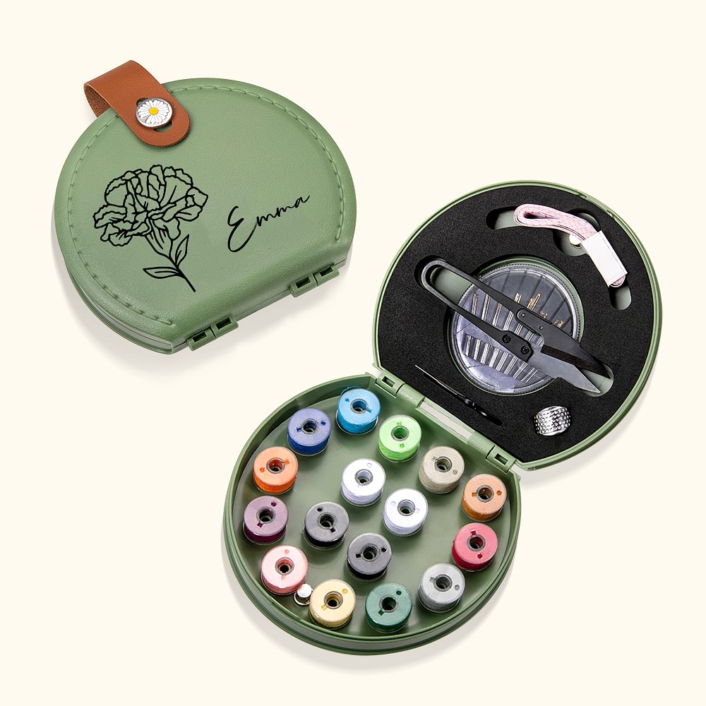 Fiore di nascita personalizzato Kit di strumenti di cucito portatile fai da te Scatola di immagazzinaggio con nome Regalo di compleanno per gli amanti
