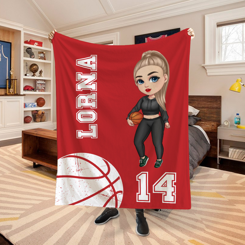 Personalisierte Multicolor Basketball Rugby Sport Mädchen weiche Decke mit Namen und Nummer Home Decor Game Day Geburtstagsgeschenk für Ball-Liebhaber werfen
