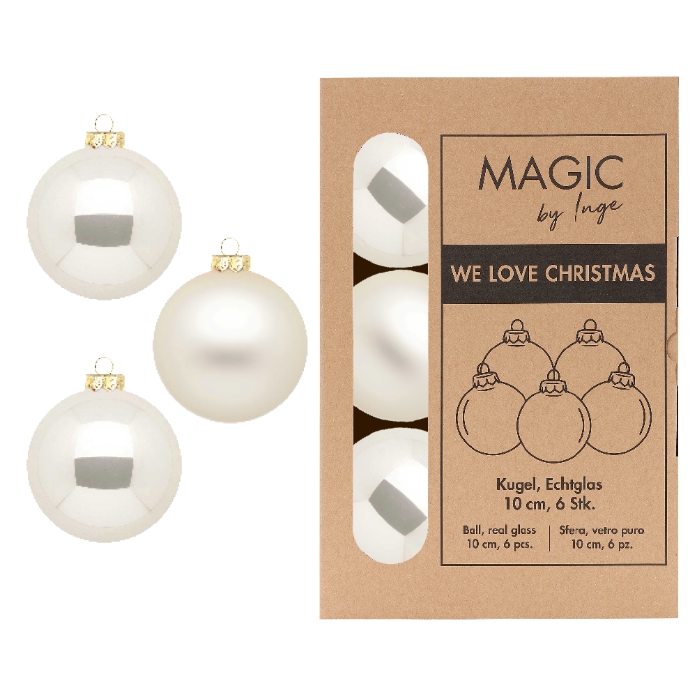 Inges Magic & Goodz 6 Weihnachtskugeln Glas 10cm matt & glänzend Christbaumkugeln Weihnachtsbaumkugeln Groß Christbaumschmuck Weihnachtsbaumschmuck Deko Taupe