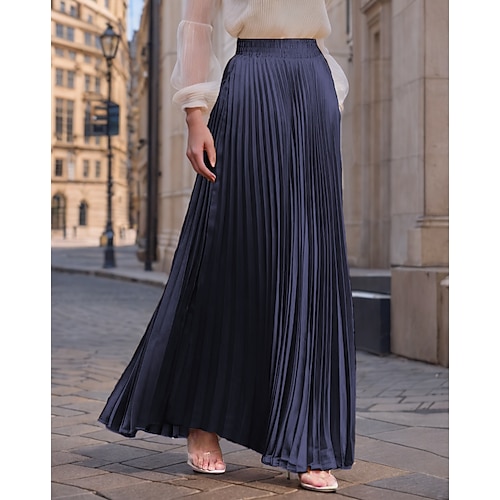 Per donna Gonna Moda Maxi Vita Alta Gonne Semplice Pieghettato Micro-elastico Quotidiano Data Vinaccia Nero Rosa Verde scuro Primavera Seta come il raso Poliestere