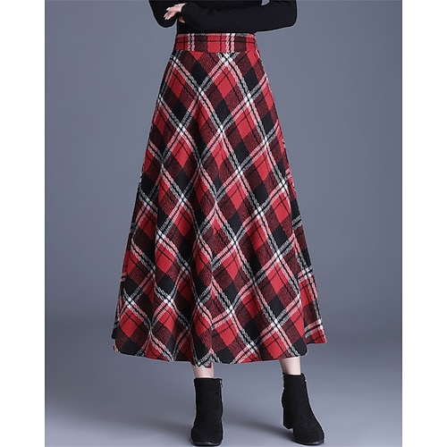 Per donna Gonna scozzese Gonna Lunga Elegante Retrò Vintage Maxi Vita Alta Gonne Plaid Blocco di colori Tasca Lungo Micro-elastico Quotidiano Casual Quotidiano Rosso Cachi Autunno 100% Poliestere