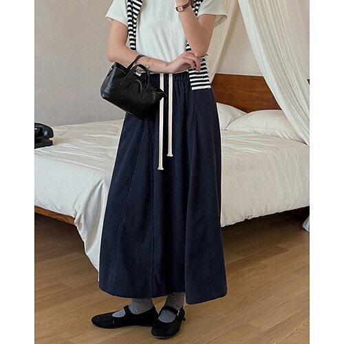 Per donna Gonna Casual Maxi Vita Alta Gonne Semplice Coulisse Inelastico Micro-elastico Quotidiano Streetwear Vinaccia blu navy Nero Bianco Primavera Velluto a coste Poliestere