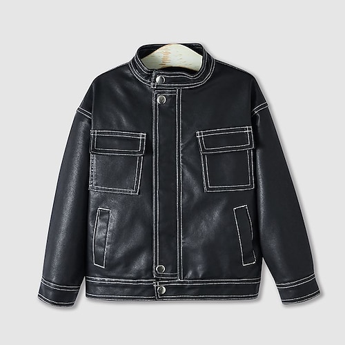 Bambini Ragazzi Giacca in pelle nera Giacca di pelle Capispalla Semplice Manica Lunga Con zip Impermeabile Antivento Cappotto Quotidiano Moda Casual Nero Marrone Primavera Autunno 4-12 Anni