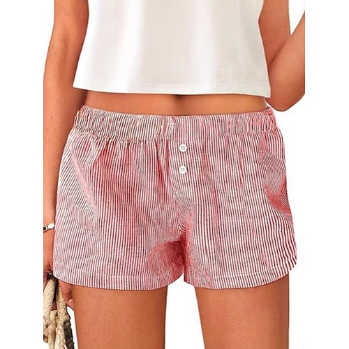 Per donna Finto cotone e lino Shorts Pantaloncini Estivi Shorts da Spiaggia Vacanza Streetwear Casual Corto Vita Alta A righe Righe Comodo Comodità Elasticizzato Casuale Quotidiano Spiaggia Nero