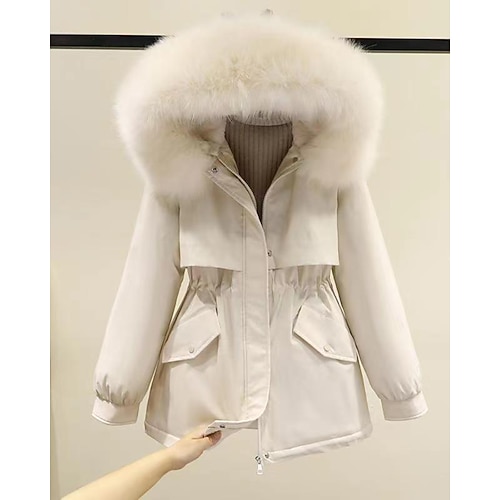 Per donna Cappotto Invernale Parka Caldo Confortevole Bordo in pelliccia Cerniera Tasca Casual Semplice All'aperto Vacanza Uscire Weekend Lungo Con Cappuccio Vestibilità regolare Manica Lunga