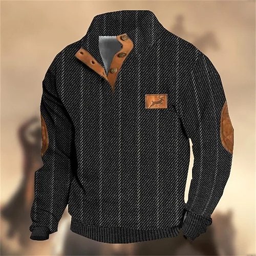 Per uomo Maglia Felpa con zip corta Nero Marrone Grigio Mezza zip Blocco di colori Renna Mezza cerniera Stampato Sport Outdoor Quotidiano Ferie Poliestere Vintage Streetwear Casual Autunno Inverno