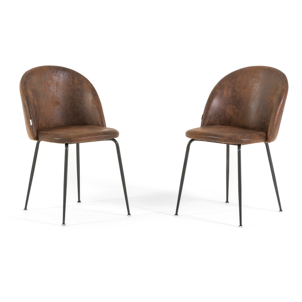 RATTATAN Set aus 2 Innenstühlen aus Kunstleder mit Metallbeinen, elegantes Design für Küche, Esszimmer, Bar und Restaurant – Sara – Kaffee/Dunkelgrau