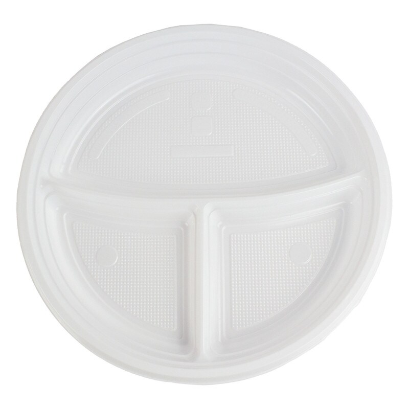 DayBays Plastikteller 3 Geteilt 300 Stk. Weiß Rund Menüteller Plastik Teller 22 cm Einweg Spülmaschinenbeständig