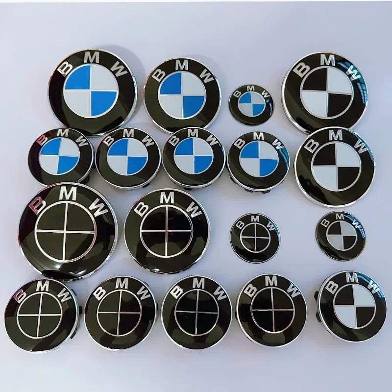 7pcs BMW Emblem Set 82mm 74mm 45mm 56mm 68mm Car Front Hood Logo Rear Trunk Badge Wheel Center Hub Caps Steering Wheel Sticker