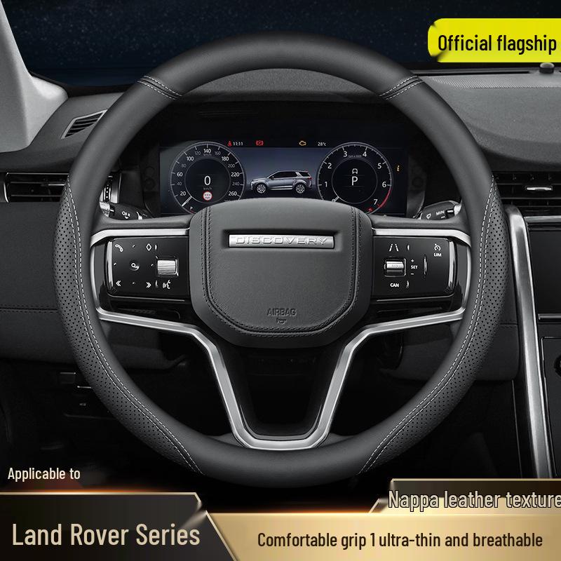 Genuine Leather Steering Wheel Cover for Land Rover: Range Rover Sport, New Energy, Evoque, Discovery 3/4, Velar - Ultra-thin Design