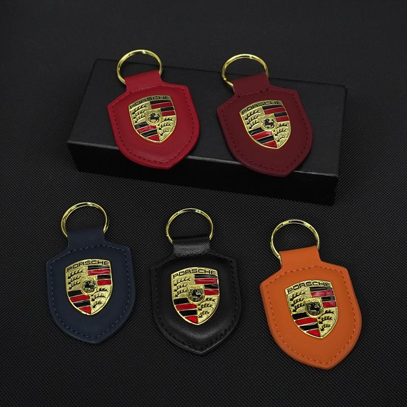 Auto Lederen Sleutelhanger Schild Type 3D Embleem Sleutelhanger Voor Porsche Cayenne Taycan 911 718 Panamera Macan Carrera-GT 928 944 968 944 wit