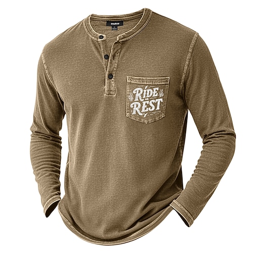 Per uomo Maglia Henley Maglietta Manica Lunga Vintage Retrò Vintage Casual Tasca Grafico Henley Casuale Primavera Autunno Tutte le stagioni Blu Viola Marrone Maglietta Henley