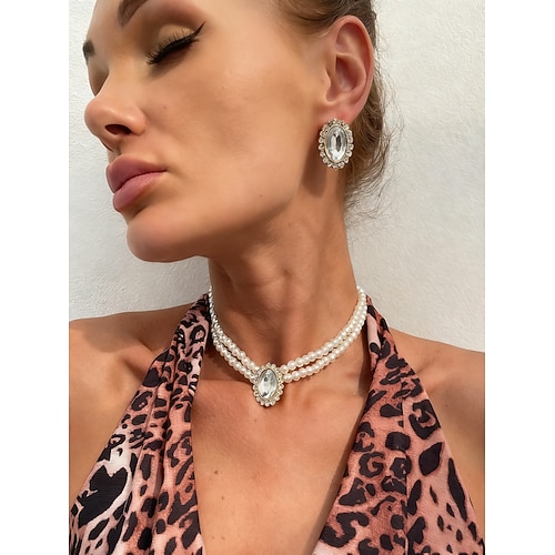 collana girocollo di perle orecchini 2 pezzi accessori flapper vintage anni '20 ruggenti anni '20 art deco per le donne