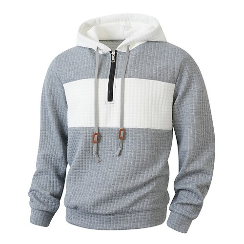Per uomo Felpa con cappuccio Felpa con cappuccio e zip corta Bianco Verde militare Rosso Grigio Con Cappuccio Blocco di colori Coulisse Patchwork Sport Outdoor Quotidiano Ferie Poliestere