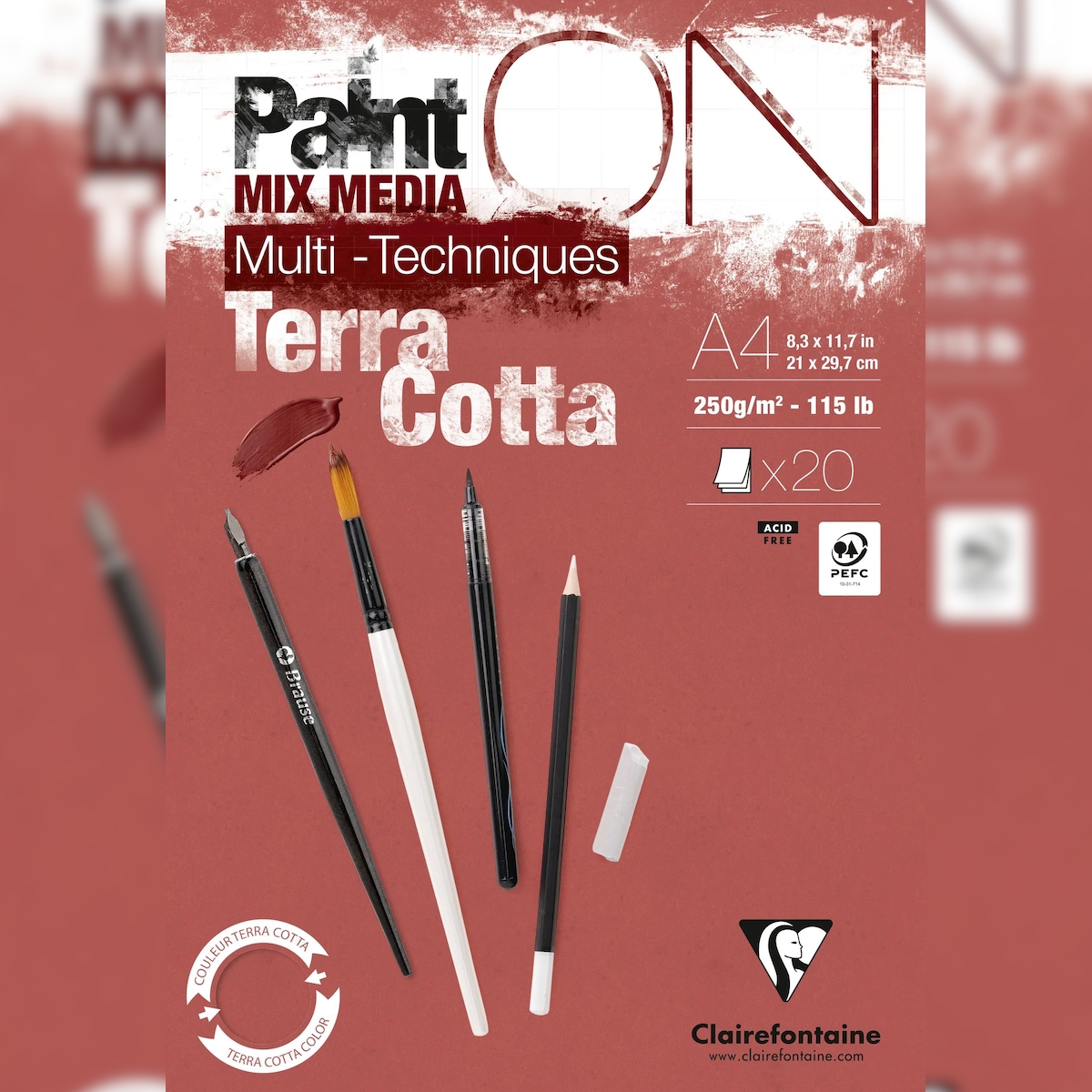 Clairefontaine 4x PaintON Terracotta, Block A4, kopfseitig geleimt, 20 Blatt 250g, Mixed Media - 976153C