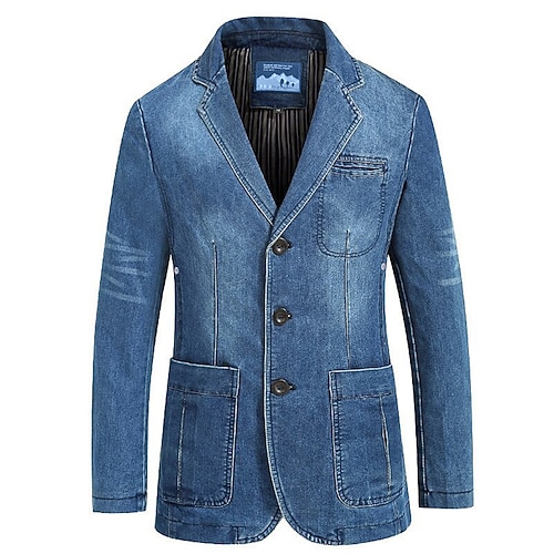per uomo blazer giacca di jeans giacca di jeans giacca sportiva cappotto sportivo per uscire collo button down casual quotidiano giacca capispalla tinta unita azzurro blu navy / cotone / cotone