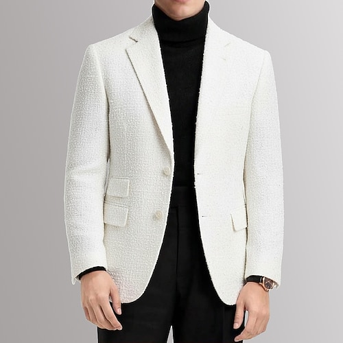 Per uomo Blazer in Tweed Colletto ad incastro Moda Classico Casual Tinta unita Spina di Pesce Blazer Nero Bianco Marrone Vestibilità standard Monopetto Due Bottoni