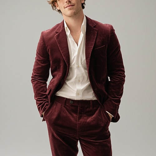 Uomo Casuale Semi-Formale Abito di velluto Bavero classico Nero Borgogna Quotidiano Casual Tinta unita Vestibilità su misura 2 pezzi Monopetto a un bottone