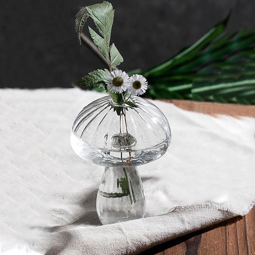 1 vaso decorativo a forma di fungo in vetro trasparente a strisce, un articolo decorativo per interni in materiale di vetro, adatto per fiori idroponici e piante verdi, decorazione e esposizione di