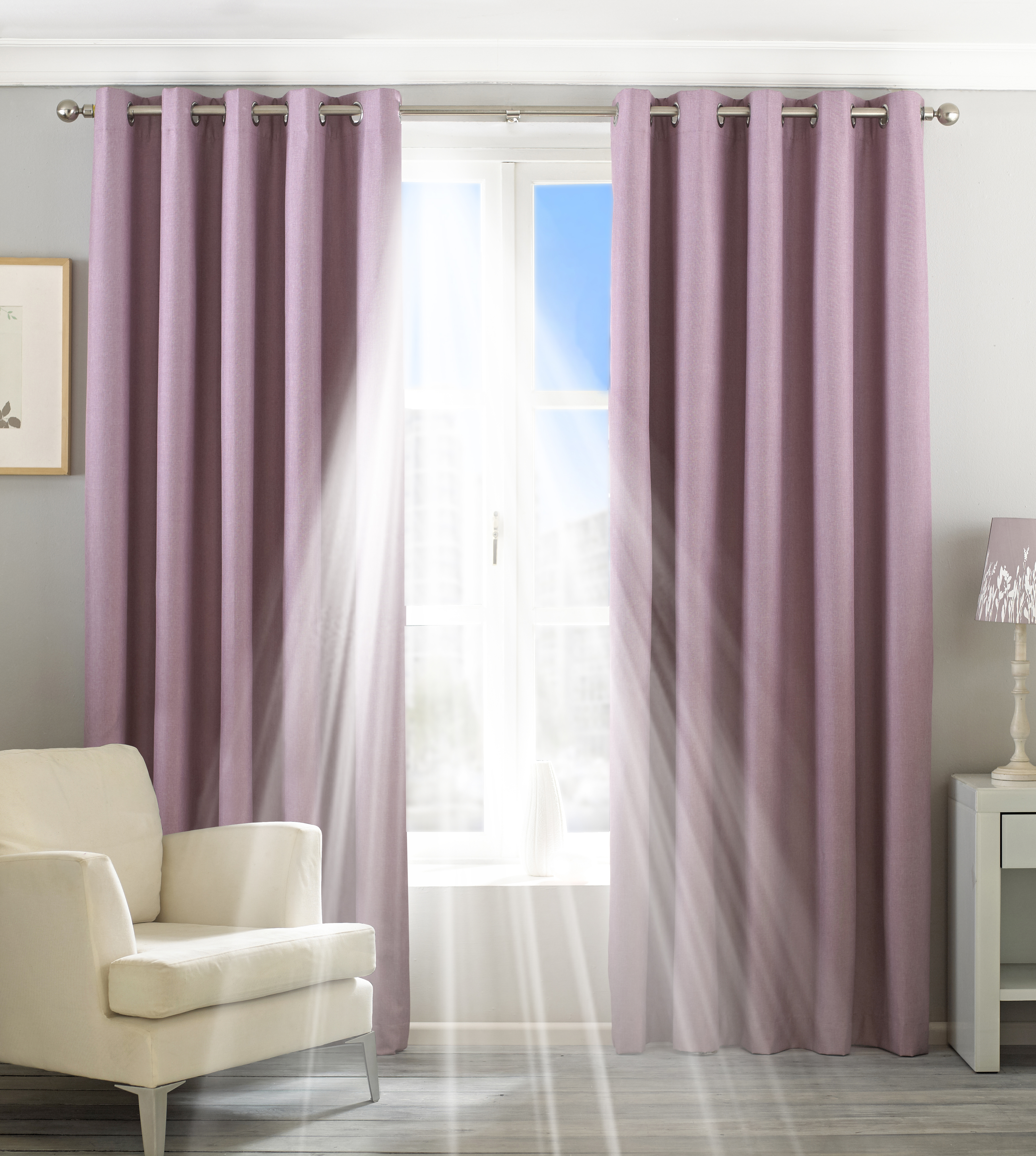 Riva Home Twilight Blackout Eyelet Curtains in Mauve - Purple - Size 229 cm x 137 cm | Riva Home Sale | Discount Designer Brands