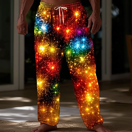 Natale Per uomo Glitter scintillanti Luci natalizie Joggers Pantaloni Pantaloni casual Misura del girovita medio Vita elastica con coulisse Casual All'aperto Ferie Pantaloni a gamba dritta Primavera