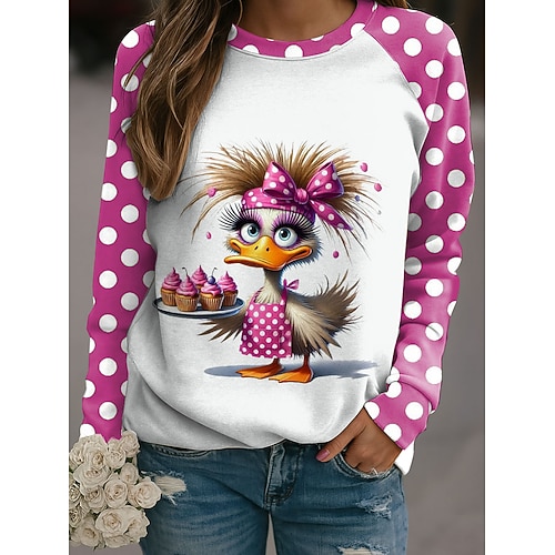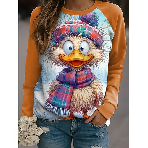 Per donna Felpe Grafico Animale Casual Manica Lunga Girocollo Top Regolari Casuale Ferie Stampato Giallo Rosso Blu Viola Autunno Inverno