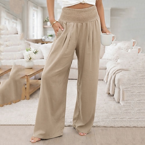Per donna Pantaloni in cotone e lino Gamba larga Chinos Streetwear Casual Lunghezza intera Vita media Semplice Tasca Fascia Elastica Confortevole Micro-elastico Quotidiano All'aperto Streetwear