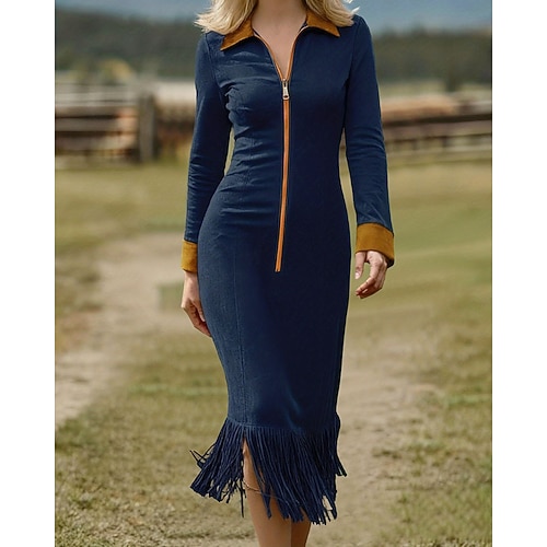 Per donna Abito Lungo Maxi Abito Abito a Maglia Abito Felpa Mini abito Abito aderente Elegante Moda Moderno Quotidiano Vacanza Uscire Taglia piccola Blocco di colori Manica Lunga Colletto a Camicia