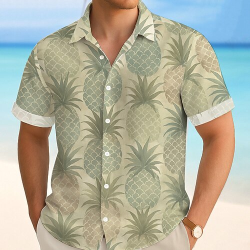 Per uomo Frutta Ananas Tropicale Camicia hawaiana estiva Camicia con Bottoni Camicia Aloha Manica Corta Hawaiano Vacanza Abbigliamento mare Estate Primavera Collo ripiegato Stampa 3D camicie con