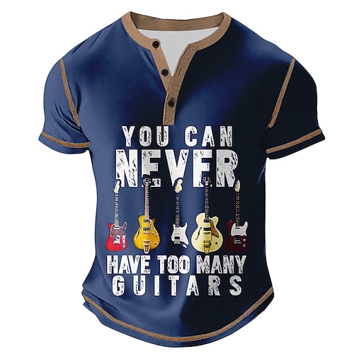 Festival musicale Manica Corta Casual Primavera Tutte le stagioni Blu Nero Verde Henley Maglietta Henley