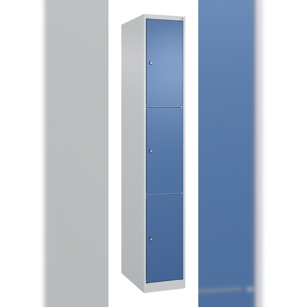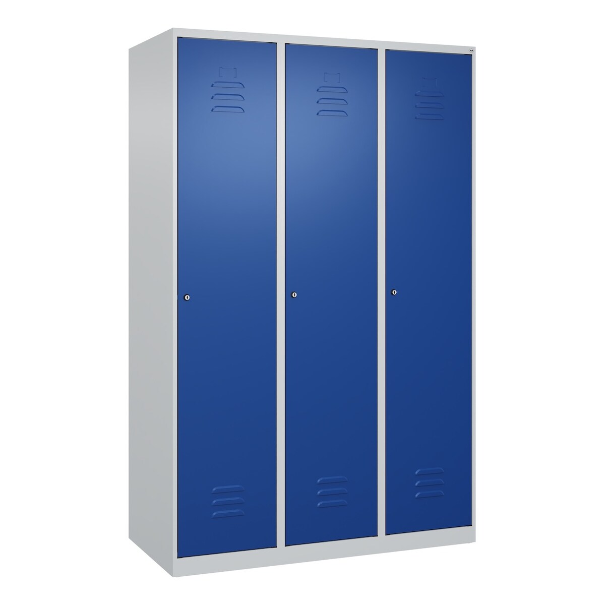C+P Spind Classic PLUS, 3 Abteile, HxBxT 185x120x50cm, Zylinderschloss, Hellgrau/Enzianblau von PROREGAL