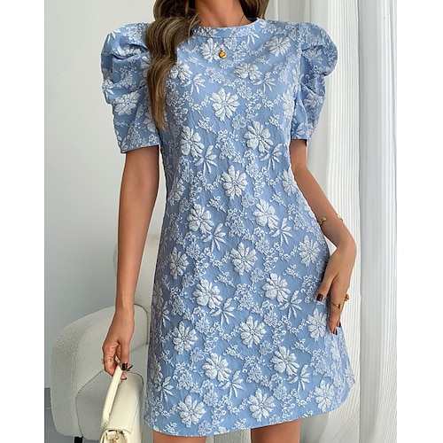 Per donna Mini Abito Abito Stampato Vintage Manica a Palloncino Quotidiano All'aperto Uscire Vestibilità regolare Floreale Manica Corta Girocollo Blu Bianco Rosa Estate Primavera
