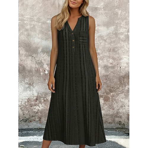 Per donna Abito Midi Abito in cotone e lino Moderno Quotidiano Vacanza Uscire Vestibilità comoda A righe Senza Maniche Scollo a V Blu Nero Rosa Viola Estate Primavera