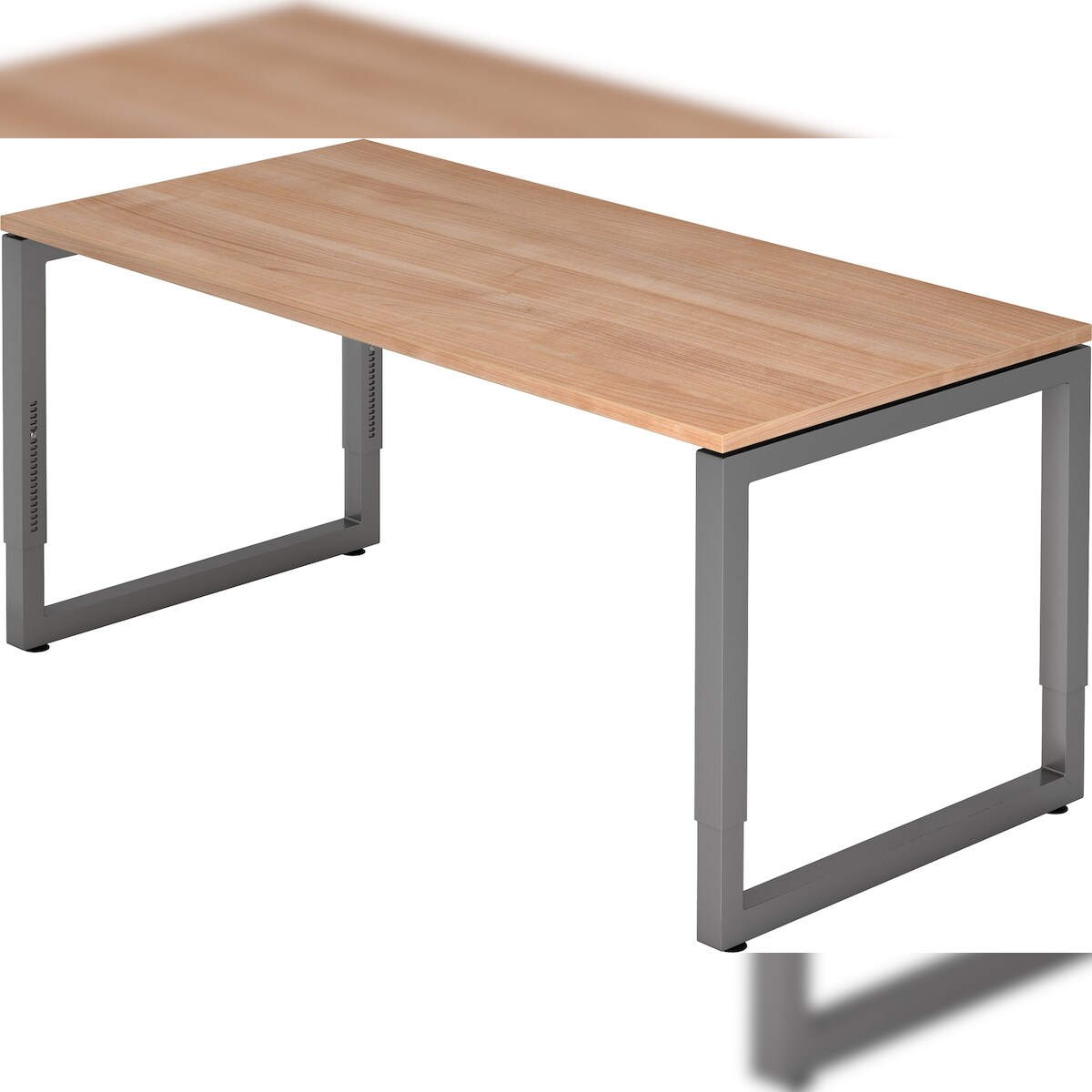 bümö höhenverstellbarer Schreibtisch R-Serie 160x80 cm in Nussbaum, Gestell in Graphit - PC Tisch für's Büro manuell höhenverstellbar, Computertisch