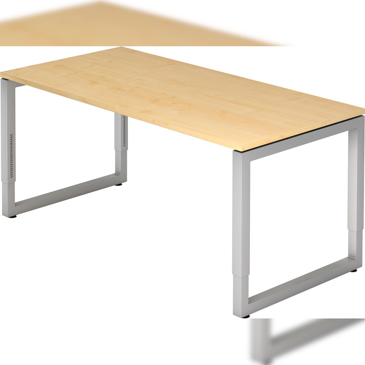 bümö höhenverstellbarer Schreibtisch R-Serie 160x80 cm in Ahorn, Gestell in Silber - PC Tisch für's Büro manuell höhenverstellbar, Computertisch