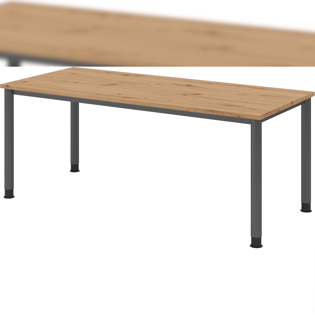 bümö höhenverstellbarer Schreibtisch H-Serie 180x80 cm in Asteiche, Gestell in Graphit - PC Tisch für's Büro manuell höhenverstellbar, Computertisch