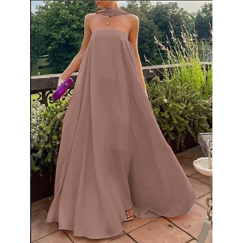 Matrimonio in spiaggia abito da sera A-Line abito da fata formale invitato matrimonio lunghezza fino al pavimento senza maniche senza spalline in chiffon elasticizzato con pieghe sciarpa