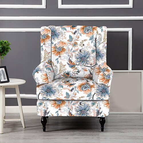 Copripoltrona con schienale alto, in poliestere con stampa floreale a righe e geometrica, per soggiorno, camera da letto e ufficio domestico