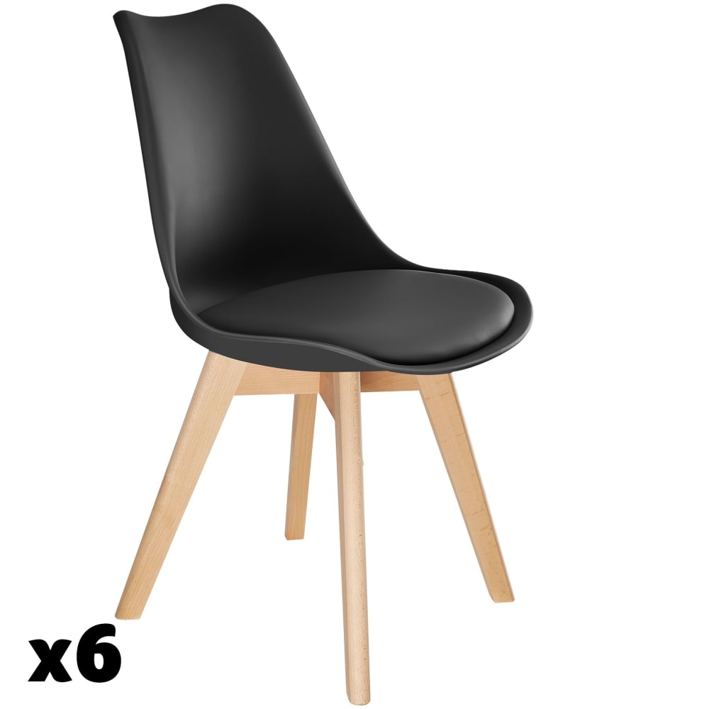 Set di 6 sedie da pranzo stile scandinavo ergonomiche nere