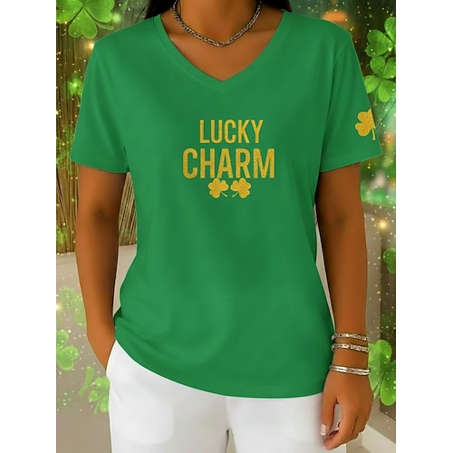Festa di San Patrizio Per donna Maglietta Trifoglio Elegante Casual Manica Corta Scollo a V Top Regolari Quotidiano Weekend Abbigliamento da vacanza Stampato Verde Estate Primavera