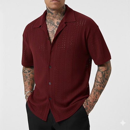Per uomo Camicia Tessuto Camicia casual Camicia con Bottoni Blu Nero Bianco Rosso Borgogna Manica Corta Semplice Testurizzato Colletto cubano Casuale Quotidiano Jacquard Abbigliamento Elegante Moda