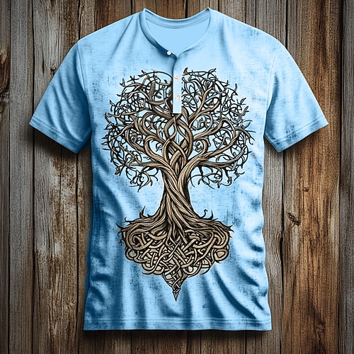 Per uomo Albero Motivo Maglietta Maglia Henley Manica Corta Vintage Designer Retrò Vintage Streetwear Casuale Quotidiano Estate Primavera Tutte le stagioni Rosa Blu chiaro Bianco Verde Grigio chiaro