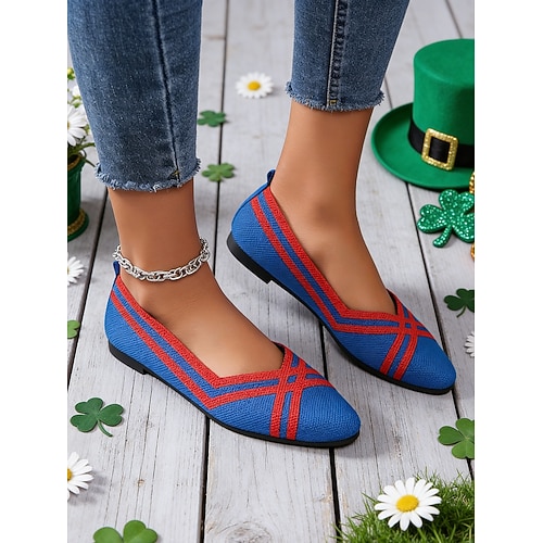 ballerine verdi da donna in Flyknit con punta affilata e motivo a croce alla moda, scarpe festive per il giorno di San Patrizio, da indossare casual, per le feste, le sfilate e le gite primaverili