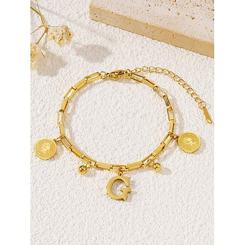 Bracciale da donna placcato in oro con lettere dell'alfabeto, ciondoli a forma di moneta e pallina, catena regolabile, elegante regalo di Natale per lei, accessorio di gioielleria personalizzato
