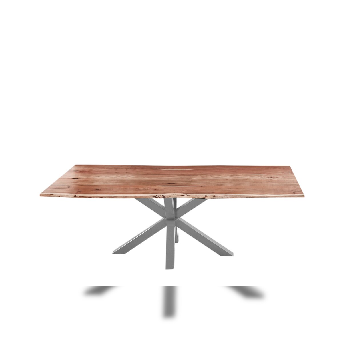 SAM® Esstisch Baumkante massiv Akazie natur 300 cm Spider-Gestell Silber QUINCY