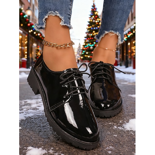 scarpe stringate stringate in similpelle verniciata bordeaux da donna: stile natalizio festoso, perfette per le riunioni di festa, le gite invernali e gli eventi stagionali
