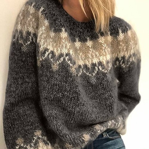 Per donna Felpa Maglione Moda Streetwear Casual Floreale Geometrico Blocco di colori Girocollo Lavorato a maglia Stampato Manica Lunga Top Regolari Maglia All'aperto Quotidiano Ferie Rosso bordeaux