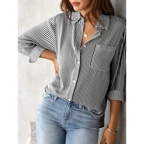 Per donna Camicia Blusa A righe Essenziale Casual Manica Lunga Colletto a Camicia Top Regolari Quotidiano Bottoni Stampato Rosa Blu Viola Grigio Estate Primavera