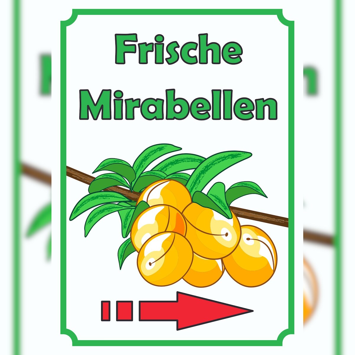 HB-Druck Frische Mirabellen Schild Hochkant mit Pfeil rechts A6 Rückseite selbstklebend