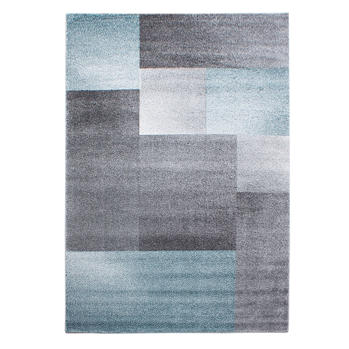 Teppich Kurzflor Karo Polypropylen saugroboter Wohnzimmer Blau Läufer 80x250 | Kadima Design